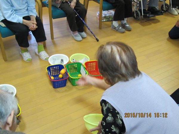 10月14日(水)本日は、ピンポン玉入れを行いました。みなさん上手にかごにピンポン玉を入れていました、高得点者がたくさんいらっしゃいました。